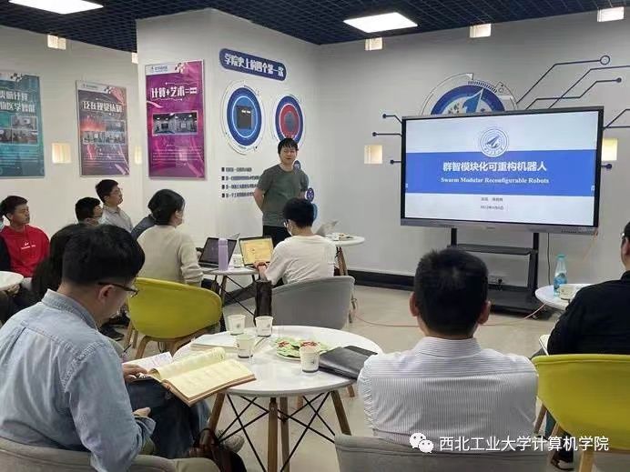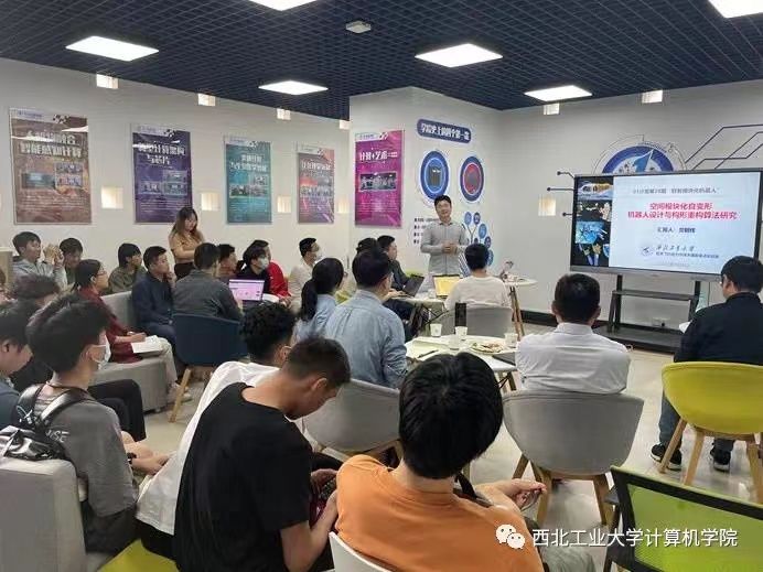 持续开展了第二十八期“01学术沙龙”活动。本次沙龙主题为“群智模块机器人”,活动将围绕这一主题,突出学科交叉创新特色,充分探讨了空间模块自动化变形机器人设计与构型重构算法研究。学院特邀航天学院党朝晖副教授作学术报告,郭斌教授主持,共计33名师生参加。