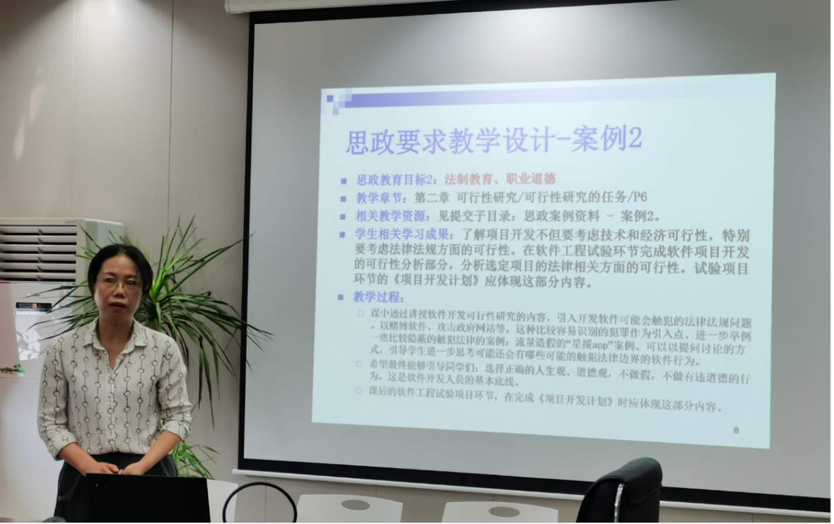 参赛老师孙夕凌在“软件工程”课程中,通过讲授软件开发可行性研究的内容,引入开发软件可能会触犯的法律法规问题。以赌博软件、攻击政府网站等案例,引导学生进一步思考,希望树立学生正确的人生观、价值观,不做有违道德的行为,坚持软件开发人员的基本底线。
