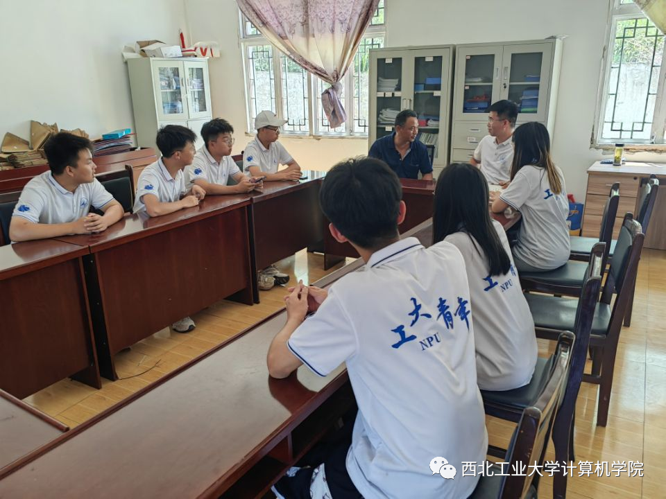 首先,实践队员同宝山村第一书记、村“两委”就宝山村从脱贫攻坚以来基础设施,乡村产业的发展进行了交流。杨支书说到:“脱贫攻坚以前,宝山村是深度贫困村,交通极其不便利,年轻人外出打工,村中以老年人为主,但是在19年修通水泥路之后,宝山村的发展就进入了快车道,村落间的交互,产品的运输等均得到了极大得便利。对于乡村经济发展,主要是先培养大富,再带动小富,最后形成相应的产业链。在住房方面,对于符合要求的居民,政府出资修建,一人20平,以保障居民住房需求。”