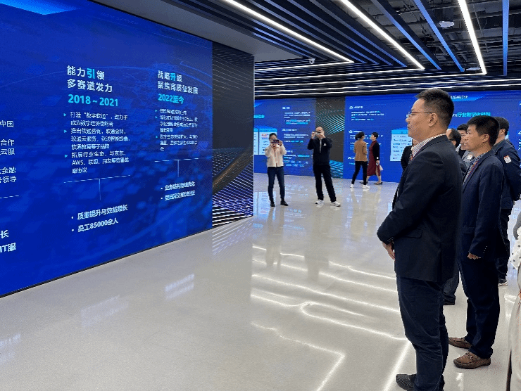 本次“访企拓岗”活动对软通动力集团开展了参观交流和实地调研。调研活动首先参观了软通动力元宇宙展厅,在全景式云展馆观看了软通动力集团在数字教育、数字农业、工业互联网、智能汽车、智能终端、云计算领域的创新产品与解决方案。接下来由集团校招负责人介绍了软通及软通教育企业概况、集团人才供给需求、人才培养合作项目等相关情况。