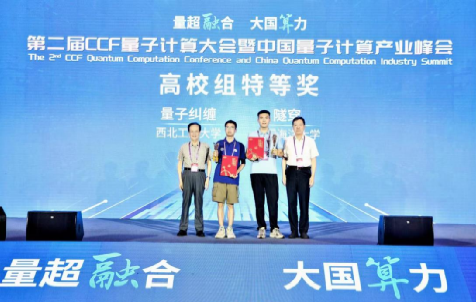 张伟伟副教授指导的本科生参赛队伍“量子纠缠”队在初赛、决赛中圆满完成了线性方程组求解、量子态制备、任意幺正变换的实现等量子算法设计和实现,一路过关斩将,最终取得特等奖的优异成绩。“量子纠缠”队员为西工大成人综艺
