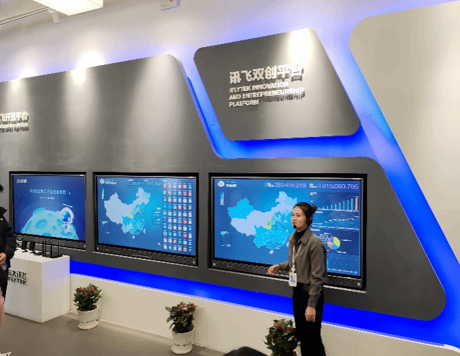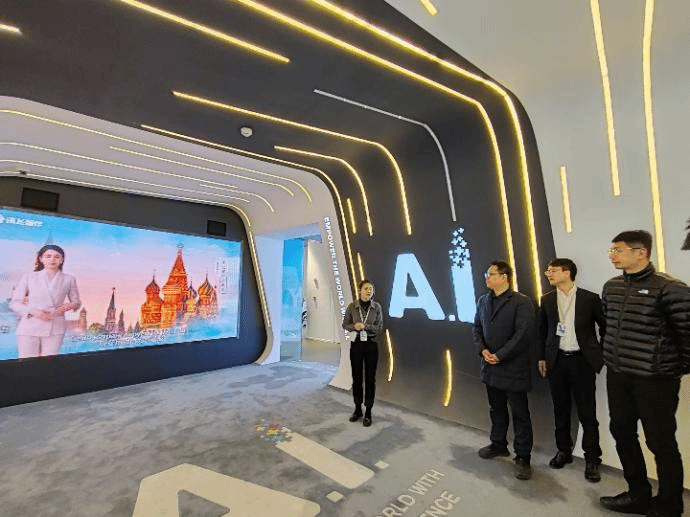 两院师生首先来到了 科大讯飞丝路总部展厅,在工作人员的引 导 和讲解下,详细了解公司的理念,关键技术以及基本概况 , 并通过展厅中多样的交互设备充分领略和 体验 了 科大讯飞基于智慧教育、智慧城市的核心技术和 研发 产品 。 包括利用 先进的人工智能快速定制虚拟人物的讯飞虚拟人技术 , 具备 语音识别、自然语言处理、机器翻译等多项功能 的 讯飞 AI智能会议系统 及 科大讯飞自主研发的深度神经网络大模型 —— 星火认知大模型 。 大量人工智能前沿科技及应用成果的展示极大地拓展了在场师生们的科技视野,也使师生们充分感受到了人工智能自主创新给人们生活带来的巨大便利和改变,从而对数字、科技、传播与社会之间的互动关系有了更为深刻的理解与思考。