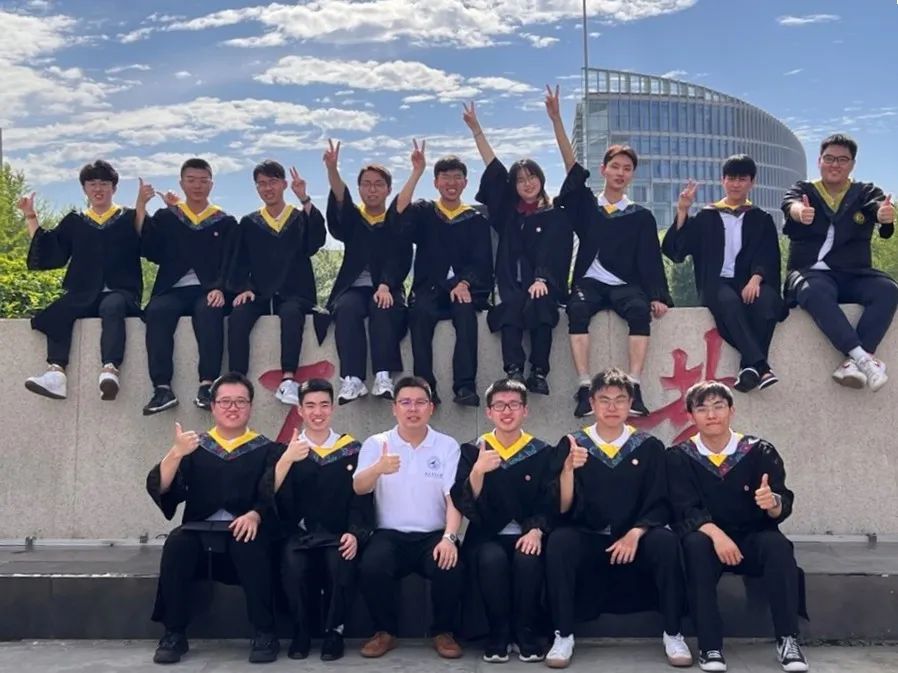 图1:首届拔尖班毕业合影(前排右一为张博同学,左三为崔禾磊教授)