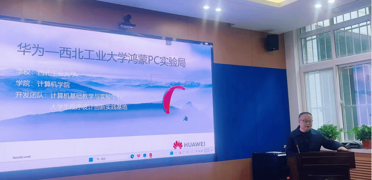 2024年共同签约成立的合作项目,是西工大发挥国防特色学科优势、探索国产化计算机教学与工业软件研发的关键平台。会上,姜学锋详细介绍了实验局前期建设成果,双方共建了鸿蒙PC教学平台,不仅将鸿蒙技术融入计算机基础、程序设计、软件技术等22门核心课程,还组建了跨航空、自动化、计算机等多学院的鸿蒙PC开发者队伍,从大一阶段开始定向培养鸿蒙人才,打造了从课程教学到实践应用的人才培养闭环。在技术研发与产品落地方面,西工大展现出亮眼的创新成果。