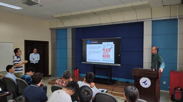 本次报告中,Lee教授首先阐述了经典的实时性问题,分别从硬件与软件、科学与工程的角度对该问题进行了深入剖析。进而,结合其团队近年来在实时系统、信息物理融合系统(CPS)研究方面的工作及进展给出了基于确定性模型的实时软件与系统的设计方法,以及在本领域的未来研究方向以及所存在的几个关键挑战。报告内容引起了与会教师与学生的极大兴趣,就所关注的问题进行了热烈讨论。报告过程中,Lee教授和张凯龙副教授还为部分师生进行了现场签名赠书,《嵌入式系统导论—CPS方法》(第2版)(Edward A. Lee著,张凯龙译)、《嵌入式系统体系、原理与设计》(张凯龙编著),进一步促进了学术交流。随后,Lee教授来到成人综艺