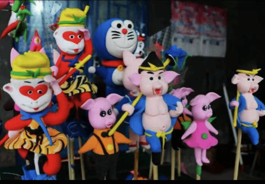 民俗区展位包括青团、面人、团扇、汉服、皮影、投壶、挖宝、风车制作。在这里,你可以体验汉服穿搭,自己动手捏面人、制作团扇以及皮影。另外我们专门准备了挖宝,制作风车,投壶,跳房子等趣味游戏。